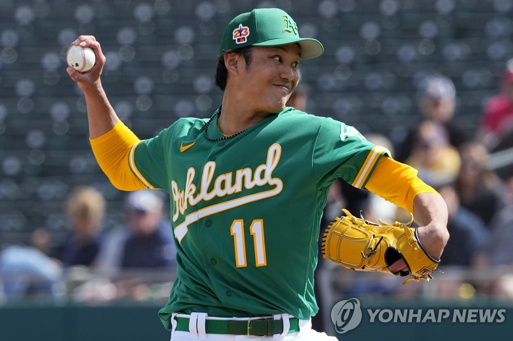 | ▲ 후지나마, 메이저리그 데뷔 (메사 AP=연합뉴스) 후지나미가 1일(한국시간) 미국 애리조나주 메사 호호캄 스타디움에서 열린 2023 미국프로야구 메이저리그 시범경기 로스앤젤레스 에인절스전에 선발 등판해 투구하고 있다. |