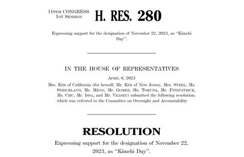 The House Committee on Oversight and Accountability plans to send H. Res. 280 on the popular fermented dish to the floor for its adoption without a vote on Dec. 6, according to the Museum of Korean American Heritage.