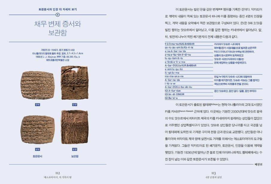 | ▲ '메소포타미아, 저 기록의 땅' 전시 도록 일부 메소포타미아 문명의 대표적 유물인 토판문서와 인장을 자세하게 설명한 부분 [국립박물관문화재단 제공. 재판매 및 DB 금지] |
