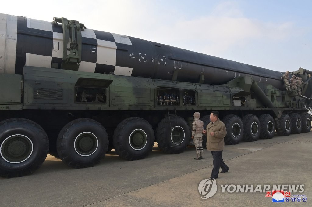 SEOUL, Nov. 19 (Yonhap) -- North Korean leader Kim Jong-un declared a resolute nuclear response to threats by the United States during an on-site inspection of the country's test-firing of a Hwasong-17 intercontinental ballistic missile (ICBM) earlier this week, Pyongyang's state media said Saturday.