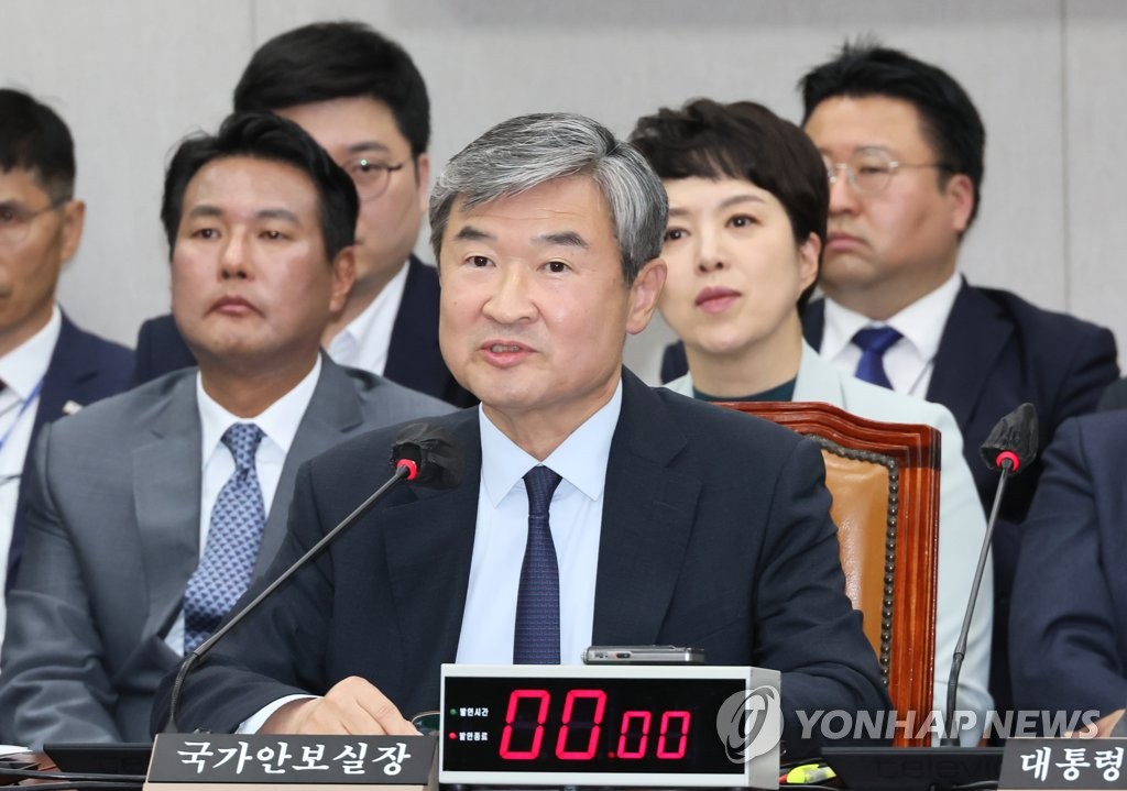 | ▲ National Security Adviser Cho Tae-yong speaks during a meeting of the parliamentary House Steering Committee at the National Assembly building in Seoul on May 24, 2023. (Yonhap) |
