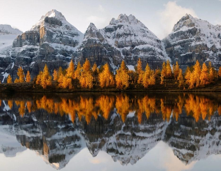 밴프 국립공원은 아한대 특유의 침엽수림이 녹음을 뽐내는 가운데 노랗게 물드는 라치 낙엽송과 대비를 이룬다.