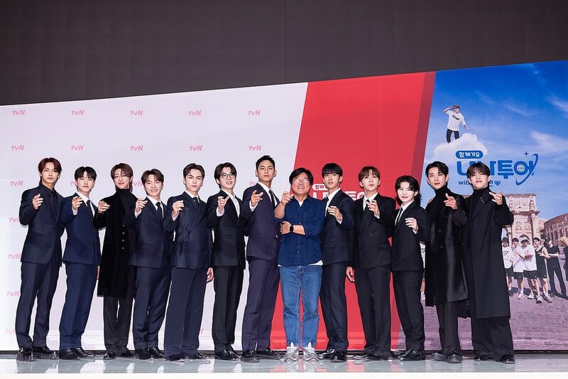 | ▲ tvN 예능 '나나투어 위드 세븐틴' 제작발표회 (서울=연합뉴스) 3일 서울 강남구 엘리에나 호텔에서 열린 '나나투어 위드 세븐틴' 제작발표회에서 나영석 PD와 보이그룹 세븐틴이 포즈를 취하고 있다. 2024.1.3 [tvN 제공. 재판매 및 DB 금지] photo@yna.co.kr |