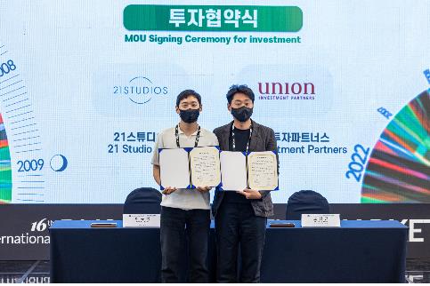 | ▲ 콘텐츠 제작 투자협약 지난해 열린 부산콘텐츠마켓에서 진행된 투자협약식.[부산콘텐츠마켓 조직위 제공] |