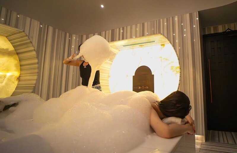 고객은 거품 속에 파묻힌 애벌레 같은 모습이 된다.