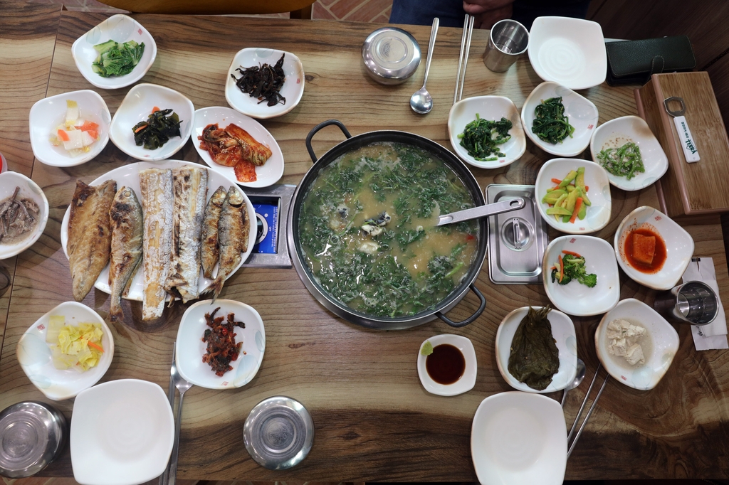 한 상 가득 밑반찬이 차려지고 도다리쑥국이 하얀 김을 내뿜으며 상에 올랐다.