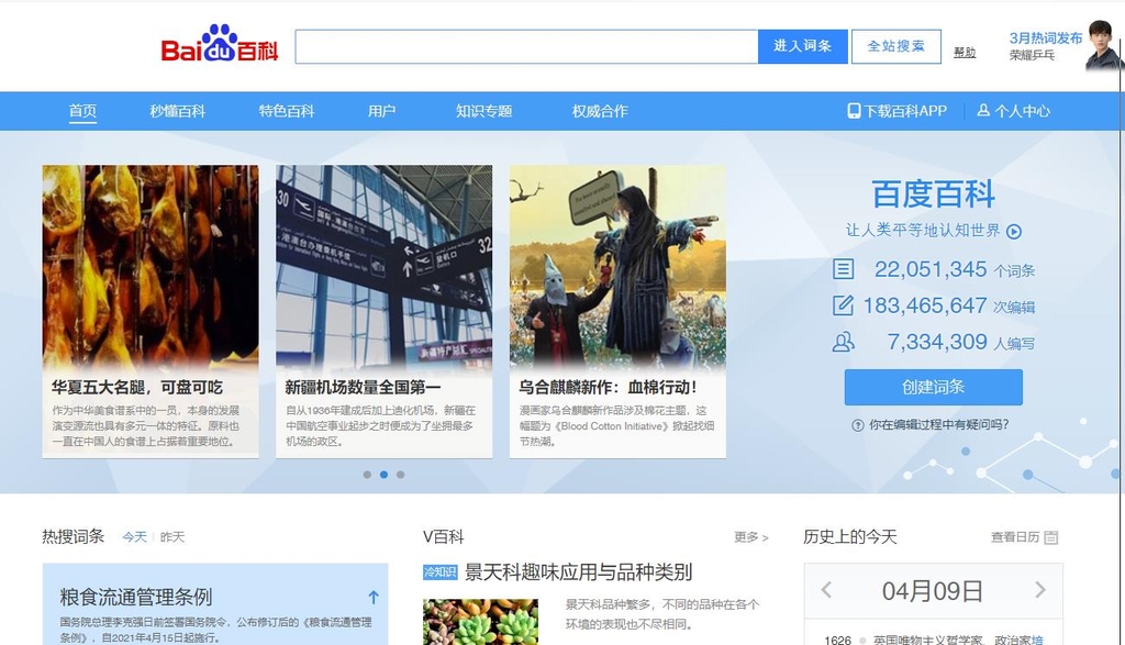 | ▲ 바이두 백과사전 홈페이지 [홈페이지 캡처] |