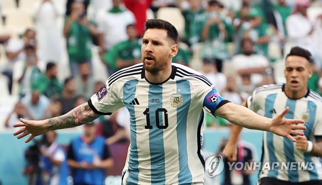 | ▲ 내가 메시다! (루사일=연합뉴스) 임헌정 기자 = 22일(현지시간) 카타르 루사일 스타디움에서 열린 2022 카타르 월드컵 조별리그 C조 1차전 아르헨티나와 사우디아라비아 경기. 아르헨티나의 리오넬 메시가 페널티킥으로 첫 골에 성공한 뒤 환호하고 있다. 2022.11.22 kane@yna.co.kr |