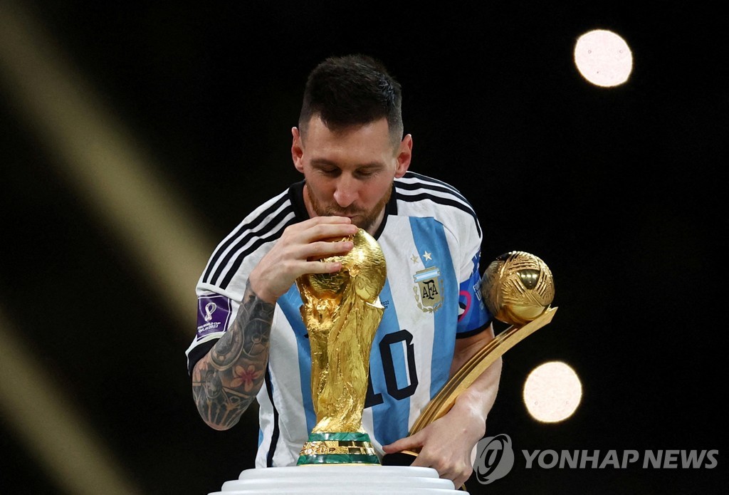 | ▲ 우승 트로피에 입 맞추는 메시 [로이터=연합뉴수] |