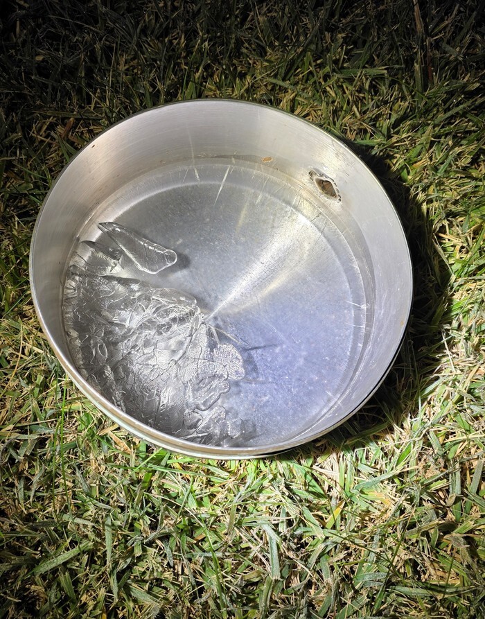 This photo, released by the Seoul Meteorological Observatory on Oct. 28, 2025, shows the season's first formation of ice observed at the observatory in the capital, 10 days earlier than the previous year and six days earlier than the average year. (PHOTO NOT FOR SALE) (Yonhap)
