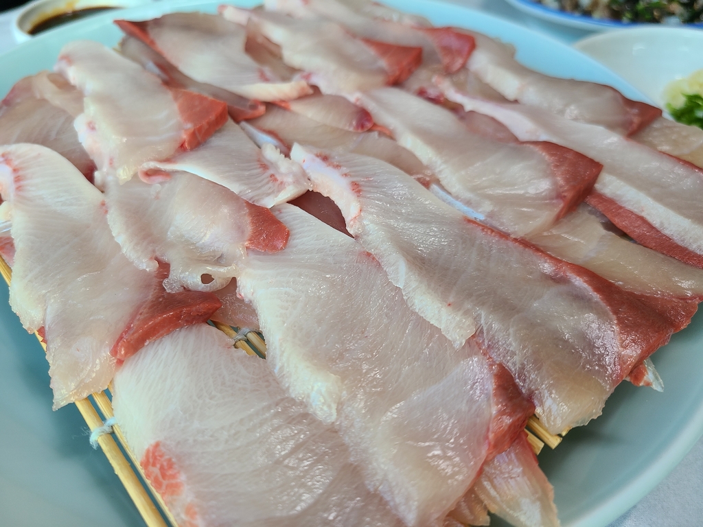 방어회를 맛본 30대 최모씨는 "방어가 워낙 기름지다 보니 고추냉이를 많이 넣어도 맵지 않다"며 "차진 식감이 입안을 감싸 마치 참치처럼 느껴지기도 한다"고 말했다.
