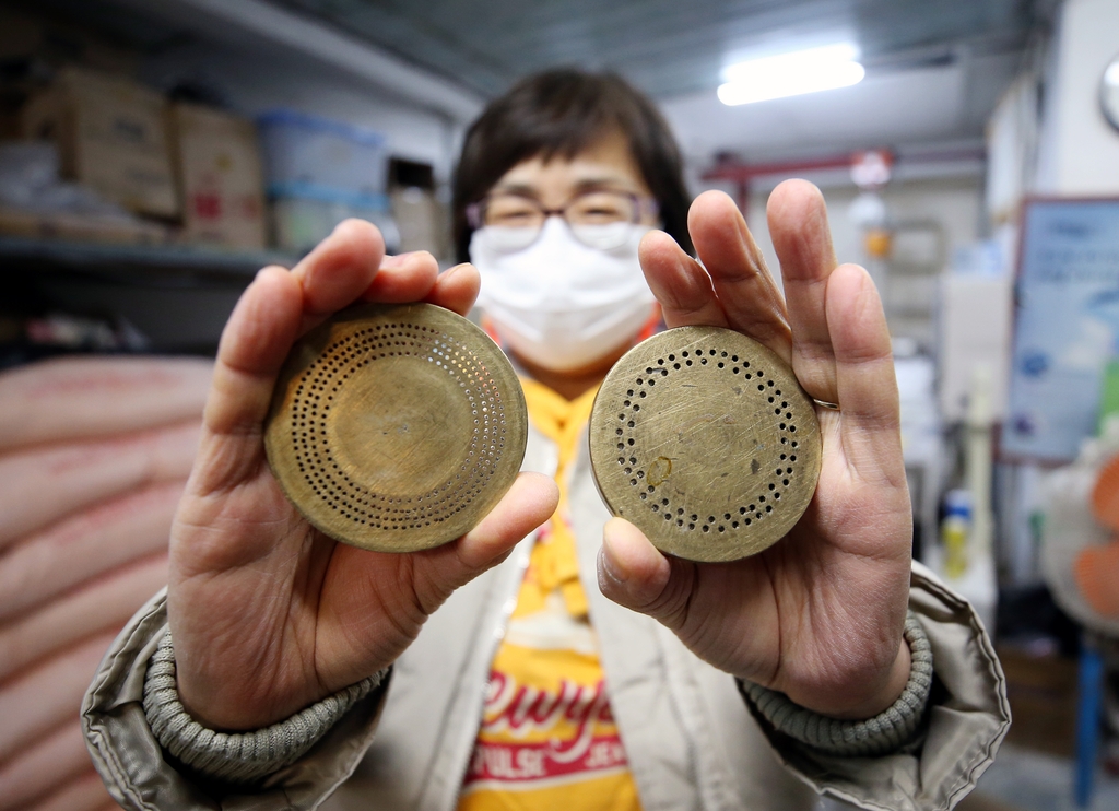 | ▲ 냉면용 사출기 체(왼쪽)와 쫄면용 체 [촬영 김상연] |