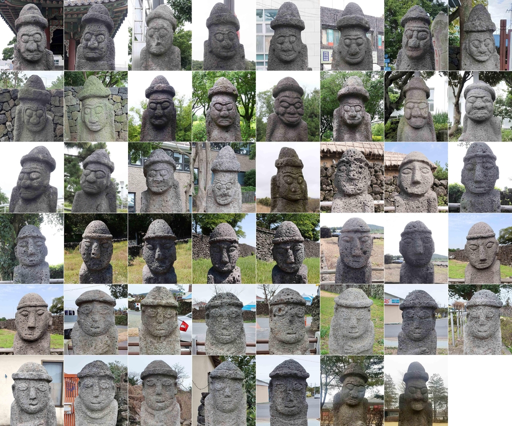 모두 제주에서 흔한 현무암으로 만들어졌는데, 1목 2현 중 어디에 있느냐에 따라 모양과 크기에 공통점과 차이가 있다.