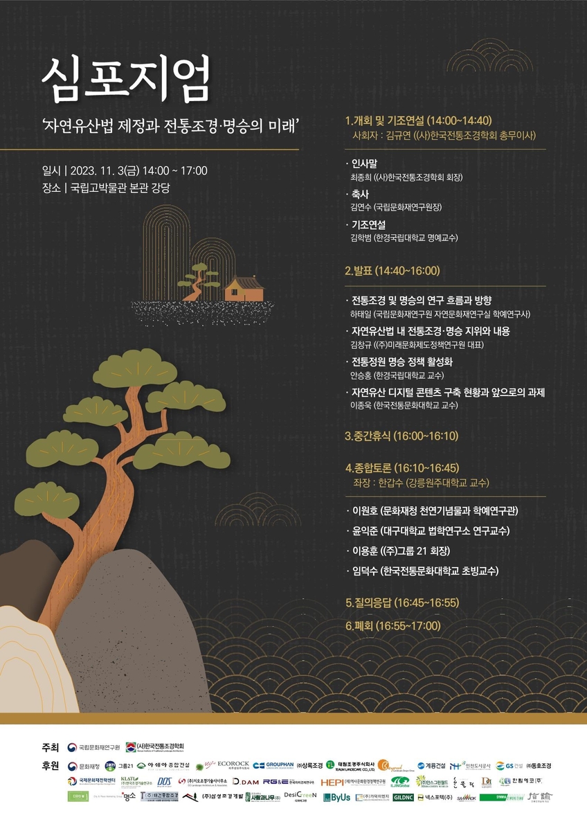 자연유산법 내 전통 조경·명승의 지위, 정책 활성화 방향 등을 다룬 발표도 이어진다.
