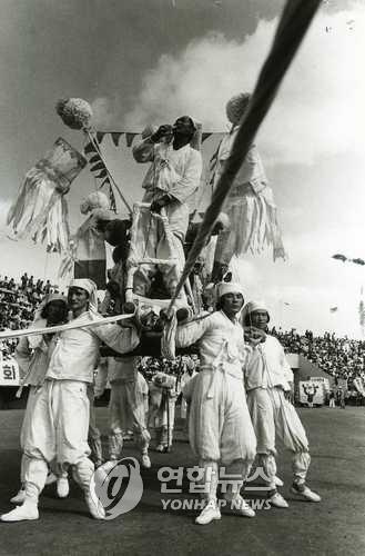 | ▲ 장례 풍속 (제주=연합뉴스) 1982년 제21회 한라문화제 북제군민팀이 선보인 제주지방 특유의 장례 풍속. [연합뉴스 자료사진] |