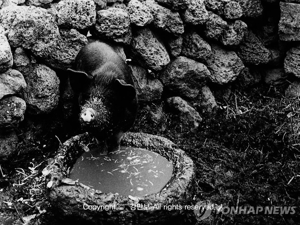 | ▲ 돗통시 안의 돼지 (제주=연합뉴스) 옛날 제주에는 집집마다 '돗통시'가 있었다. '돗'은 돼지를, '통시'는 뒷간을 뜻하는 말로 돗통시는 돼지우리와 화장실을 겸한 공간이다. 강만보 사진 작가 촬영. [제주학연구센터 제공, 재판매 및 DB 금지] |