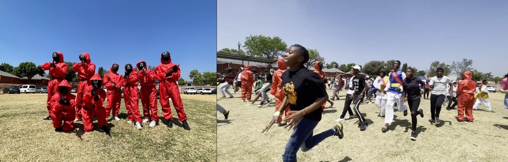 ▲ 남아공한인회 '한가위 축제' 남아공 한인회는 지난 9월 24일 '한가위 축제'를 열어 드라마 '오징어 게임' 속 전통 놀이를 현지인과 함께했다. [남아공한인회 제공]