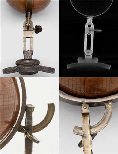 | ▲ 일영원구(日影圓球) 부분 모습 위 사진은 다림줄이 설치되었던 부분과 컴퓨터단층촬영(CT) 촬영 모습. 아래 사진은 위도 조절 장치. [문화재청 제공. 재판매 및 DB 금지] |