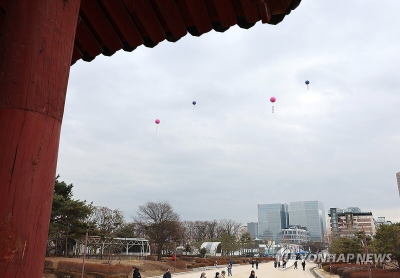 | ▲ 세운4구역에 애드벌룬 띄운 서울시 (서울=연합뉴스) 김주형 기자 = 9일 서울 종묘 외대문 밖에서 재개발로 지어질 세운4구역 내 고층 건물과 비슷한 높이의 서울시가 띄운 애드벌룬이 보인다. 서울시는 "국가유산청에서 세운4구역 높이 실증을 위한 종묘 정전 촬영을 불허했으며, 정확한 높이 실증을 위해서는 종묘 안 정전에서 사진 촬영해야 한다"고 주장했다. 2026.1.9 kjhpress@yna.co.kr |