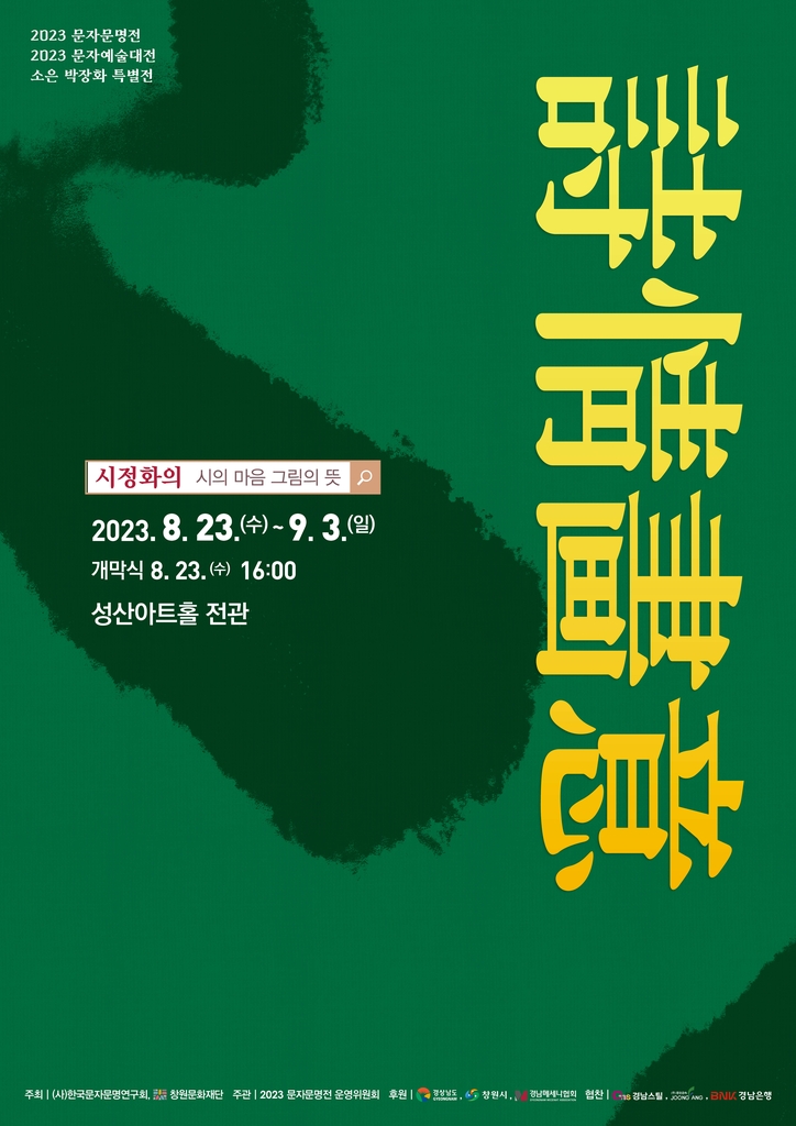 창원문화재단과 사단법인 한국문자문명전연구회가 공동 주최하는 이번 전시는 '시정화의'(詩情畵意·시의 마음 그림의 뜻)를 주제로 열린다.