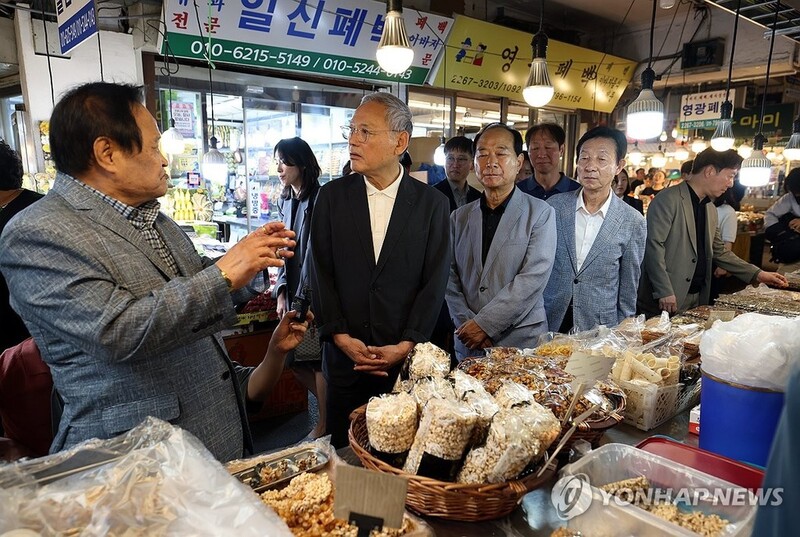 | ▲ 광장시장 찾은 유인촌 장관 (서울=연합뉴스) 유인촌 문화체육관광부 장관이 14일 서울 종로구 광장시장을 방문해 상인들의 의견을 청취하고 있다. 2024.6.14 [문화체육관광부 제공. 재판매 및 DB 금지] photo@yna.co.kr |