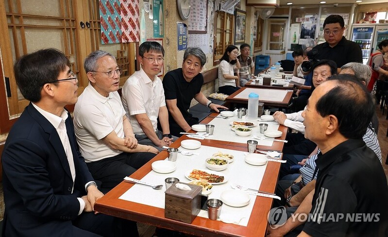 | ▲ 광장시장 상인과 간담회 하는 유인촌 장관 (서울=연합뉴스) 유인촌 문화체육관광부 장관이 14일 서울 종로구 광장시장을 방문해 한 식당에서 상인 및 관계자와 간담회를 갖고 의견을 나누고 있다. 2024.6.14 [문화체육관광부 제공. 재판매 및 DB 금지] photo@yna.co.kr |