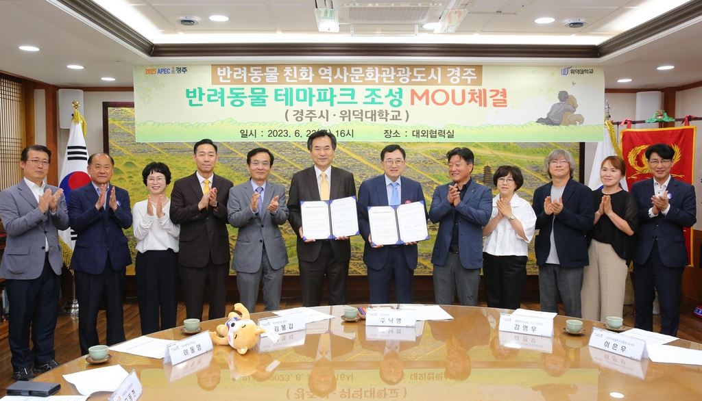 26일 경주시에 따르면 시는 지난 23일 시청에서 위덕대와 반려동물 테마파크 조성을 위한 협약을 했다.