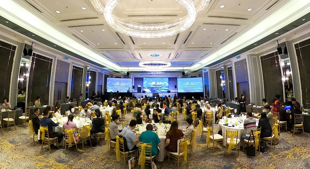 | ▲ "제주로 오세요" 관광 설명회 (쿠알라룸푸르=연합뉴스) 변지철 기자 = 현지시각으로 지난 7일 오전 말레이시아 수도 쿠알라룸푸르 JW 메리어트 호텔에서 '말레이시아 주요도시 제주관광 설명회'가 열리고 있다. 2022.12.12 |