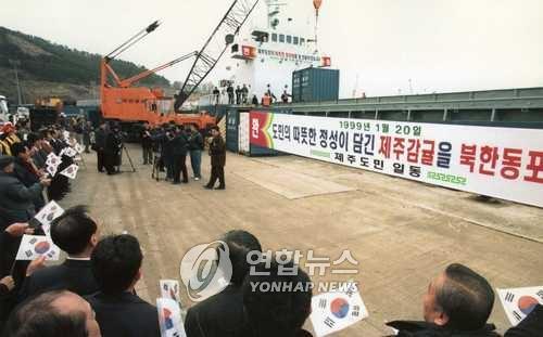 1999년 1월 20일 제주산 감귤 100t이 북한에 보내졌다.