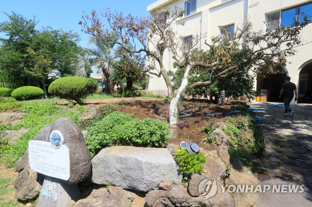 ▲ 고사 위기의 제주 최초 온주밀감 나무 (제주=연합뉴스) 고사 위기에 빠진 제주 최초의 온주밀감 나무인 '미장온주'의 2018년 7월 25일 모습. '미장온주'는 1911년 프랑스 출신 에밀리 타케 신부가 서귀포시 서홍동 204번지 옛 홍로성당 터에 심은 것으로 알려져 있다. [연합뉴스 자료사진]