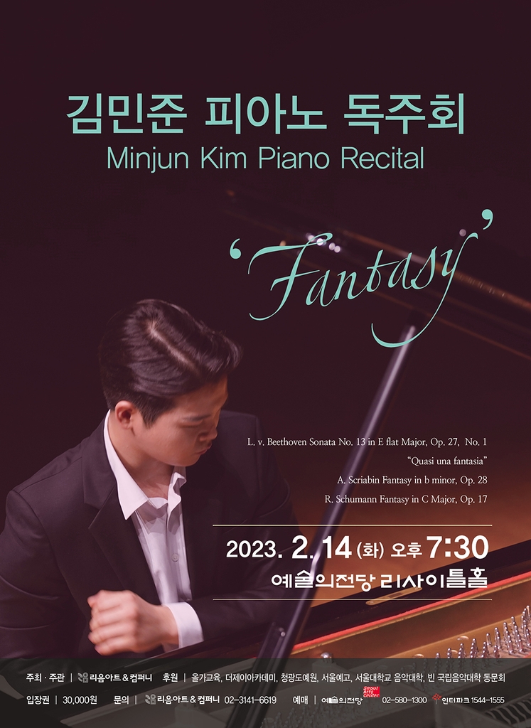 김민준은 슈만과 스크랴빈의 환상곡과 베토벤 소나타 13번 등을 들려줄 예정이다. 서울대 음대를 거쳐 오스트리아 빈 국립음대에서 최고연주자 과정을 졸업한 김민준은 프랑스 리옹 국제피아노콩쿠르 2위, 루마니아 모차르트 국제콩쿠르 우승 등의 이력이 있다.