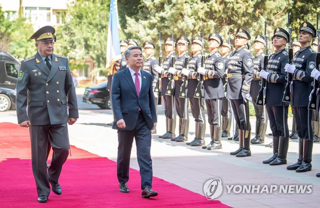 Lee also agreed to actively expand defense industry cooperation as he explained South Korean weapons' strengths, according to the ministry. The Uzbek minister expressed interest in such cooperation.