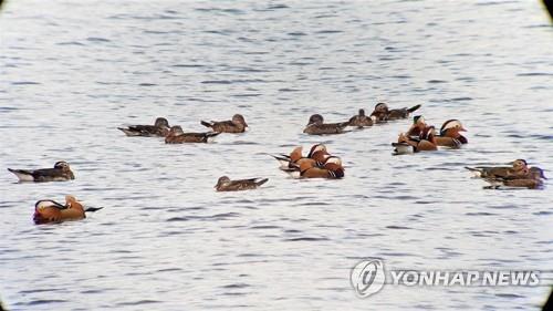 | ▲ 익산 금마저수지에 집단 서식하는 원앙 [익산시 제공·재판매 및 DB 금지] |