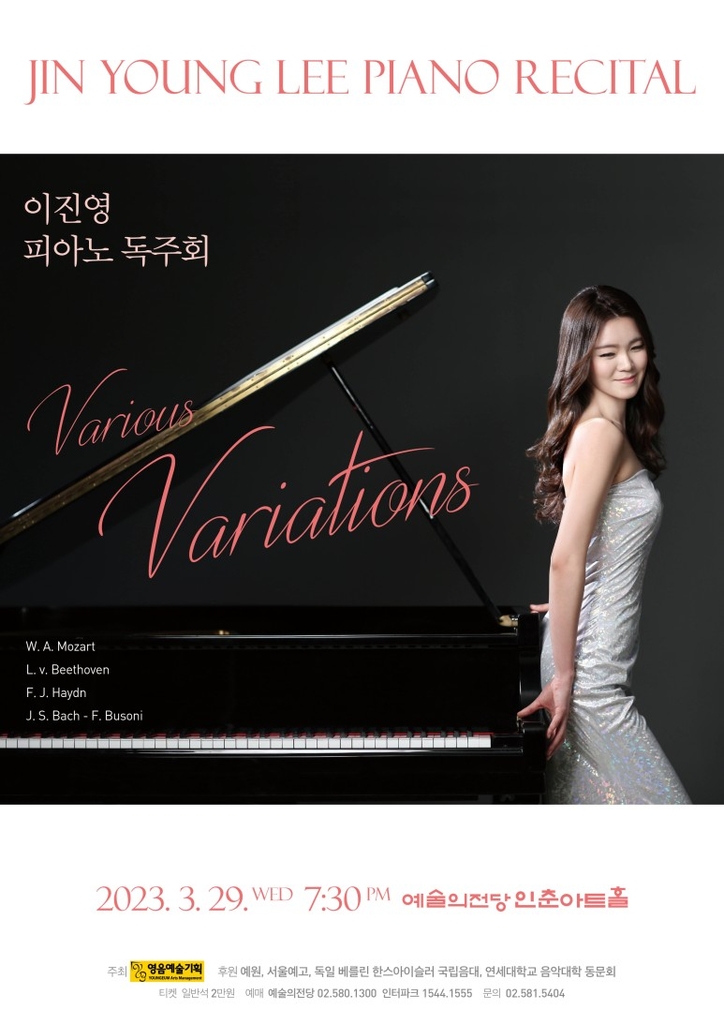 ▲ 피아니스트 이진영 독주회 = 피아니스트 이진영이 오는 29일 서울 예술의전당 인춘아트홀에서 '다양한 변주곡들'(Various Variations)이라는 제목의 독주회를 연다.