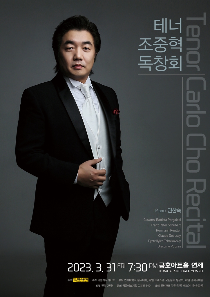 ▲ 테너 조중혁 독창회 = 테너 조중혁의 독창회가 오는 31일 서울 금호아트홀 연세에서 열린다.