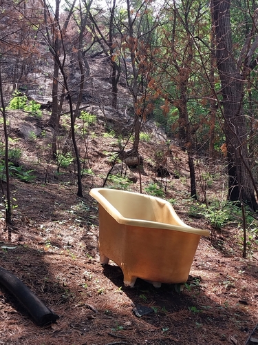 인왕산 산불 지역에 놓인 황금색 욕조 의미는