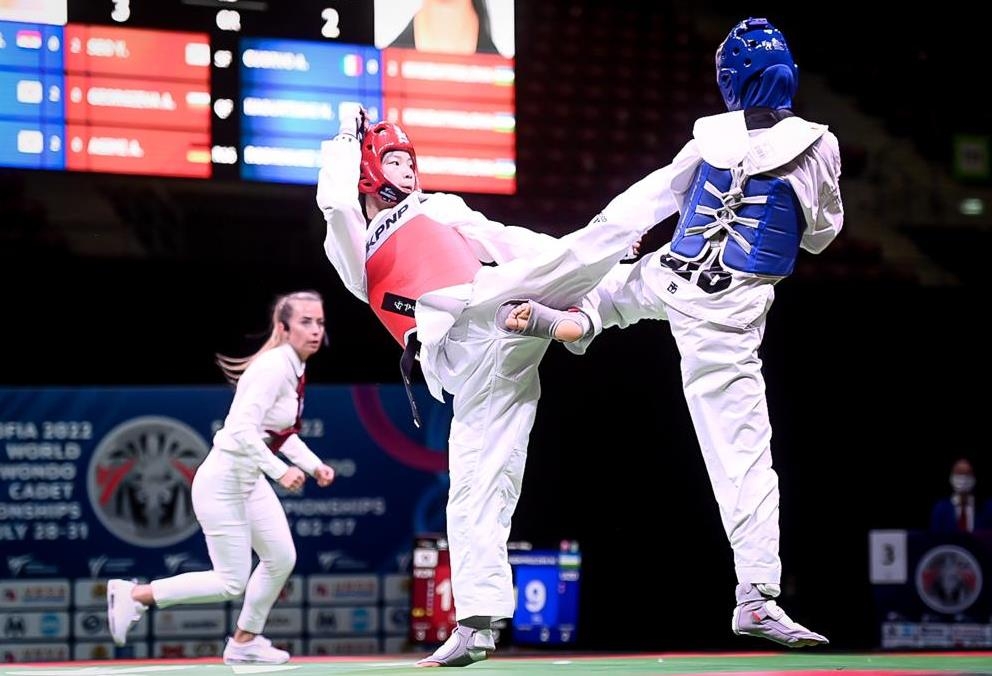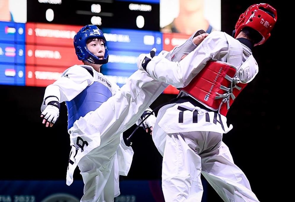 | ▲ 여자 52㎏급 금메달리스트 서여원(왼쪽)의 결승 경기 모습. [세계태권도연맹 제공. 재판매 및 DB 금지] |