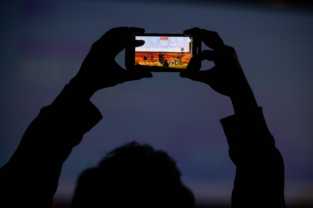 | ▲ 공연과 함께 즐기는 영화 (전주=연합뉴스) 지난달 28일 전북 전주시 완산구 중앙동 전라감영에서 열린 제24회 전주국제영화제 '전주영화X산책' 프로그램에서 한 관람객이 공연 내용을 휴대전화에 담고 있다. [전주국제영화제 제공. 재판매 및 DB 금지] |