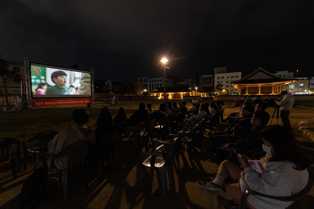 | ▲ 전라감영 불빛 옆에서 (전주=연합뉴스) 지난달 28일 전북 전주시 완산구 중앙동 전라감영에서 열린 제24회 전주국제영화제 '전주영화X산책' 프로그램에서 정승오 감독의 '이장' 영화가 상영되고 있다. [전주국제영화제 제공. 재판매 및 DB 금지] |