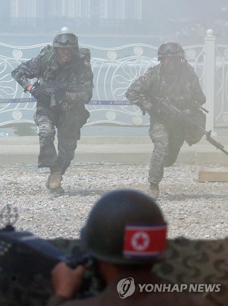 | ▲ '인천을 탈환하라' (인천=연합뉴스) 2016년 9월 9일 오전 인천시 중구 월미도에서 열린 '6·25전쟁 66주년 인천상륙작전 전승행사'에서 해병대원들이 인천상륙작전을 재연하고 있다. [연합뉴스 자료사진] |