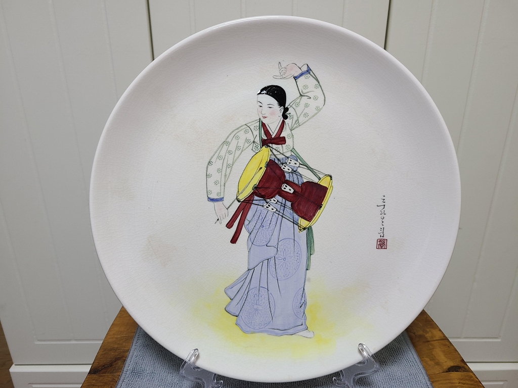 일명 '핸드페인팅' 접시로 지름 30∼40㎝ 내외 크기의 접시 앞면에는 풍속화를 그려 넣고 뒷면에는 작품의 제목을 한글과 영어로 함께 적었다.