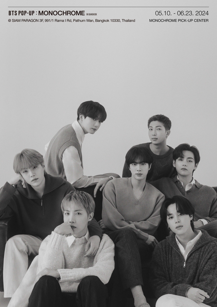 방콕 랜드마크 백화점 '시암 파라곤'에 마련된 'BTS 팝업: 모노크롬 인 방콕' 팝업스토어는 오는 6월 23일까지 열린다.