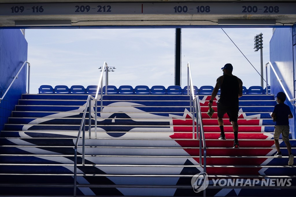 | ▲ In this Associated Press file photo from March 2, 2021, fans arrive at TD Ballpark in Dunedin, Florida, for a major league spring training game between the home team Toronto Blue Jays and the Philadelphia Phillies. (Yonhap) |