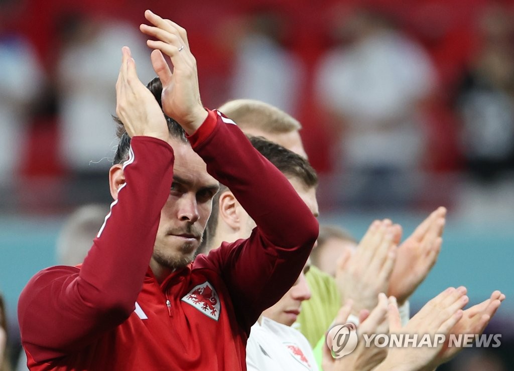 | ▲ 끝이 난 베일의 월드컵 (알라이얀=연합뉴스) 임헌정 기자 = 지난해 11월 30일 오전(한국시간) 카타르 알라이얀의 아흐마드 빈 알리 스타디움에서 열린 2022 카타르 월드컵 조별리그 B조 3차전 웨일스와 잉글랜드 경기. 0-3 패배한 웨일스의 개러스 베일이 관중을 향해 박수치며 감사를 표하고 있다. 2022.11.30 kane@yna.co.kr |