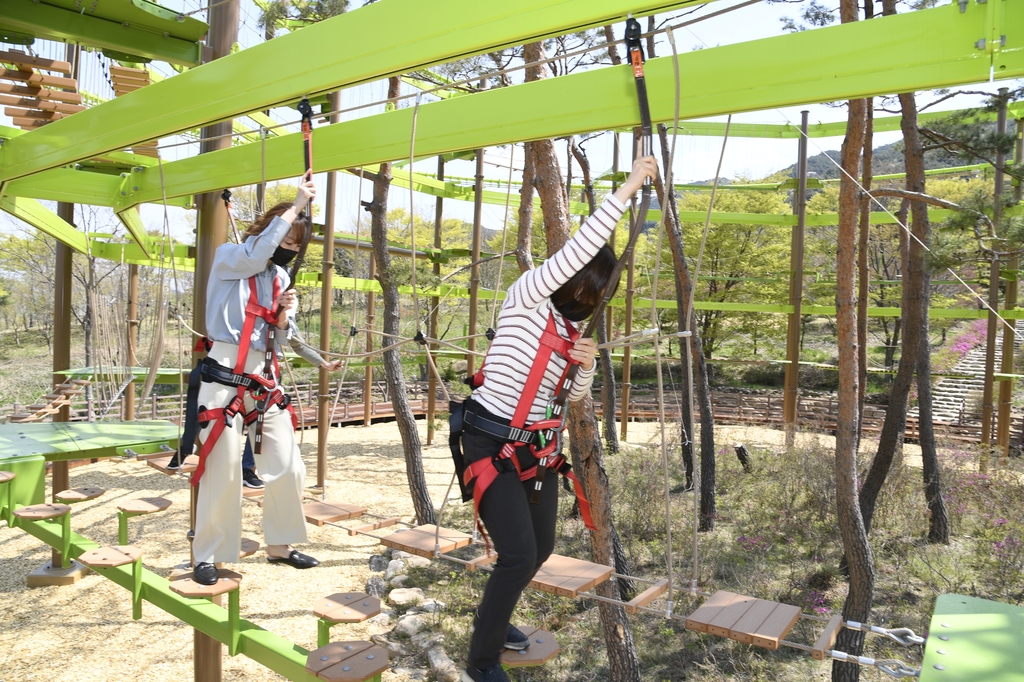 (남원=연합뉴스) 백도인 기자 = 전북 남원시는 운봉읍의 지리산 허브밸리에 공중 모험 놀이시설인 스카이 트레일을 만들었다고 22일 밝혔다.