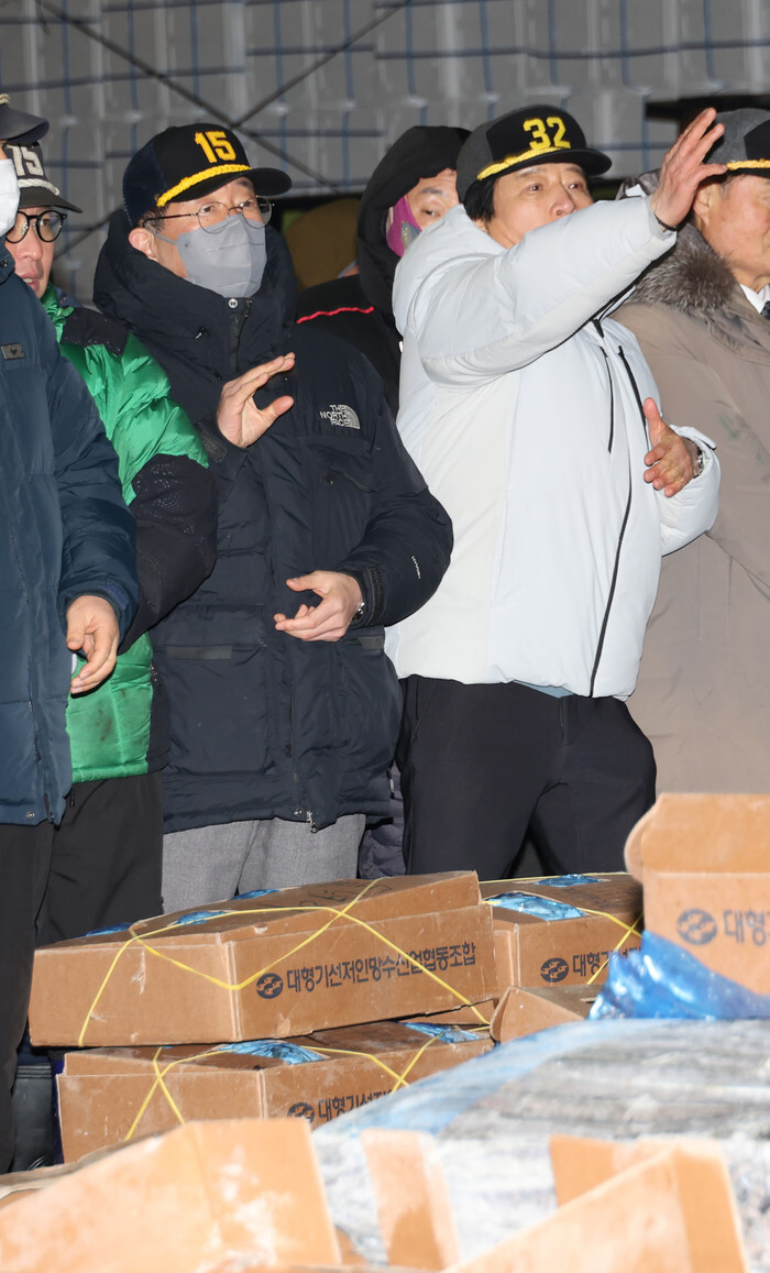 A group of licensed auctioneers takes part in this year's first auction of fish at a cooperative fish market in the southeastern port city of Busan on Jan. 2, 2026. (Yonhap)