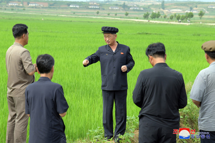 North Korean Premier Kim Tok-hun (C) inspects a farm in South Hwanghae Province, in this undated photo released by the North's official Korean Central News Agency on June 25, 2024. (For Use Only in the Republic of Korea. No Redistribution) (Yonhap)
