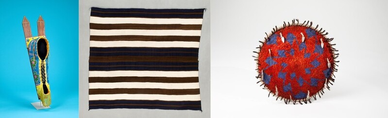 | ▲ 주요 전시품 왼쪽부터 카이오와족 원주민이 쓴 것으로 추정하는 아기를 위한 요람, 나바호족의 족장 덮개, 애니 분(포모족)의 새의 깃털로 장식한 바구니. 모두 덴버박물관 소장품 [국립중앙박물관 제공. 재판매 및 DB 금지] |