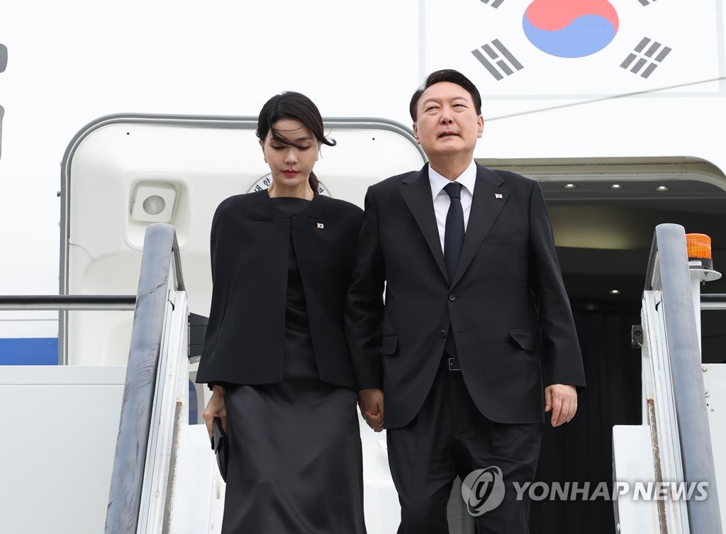 Yoon left for London on Sunday to attend the state funeral of Queen Elizabeth II, kicking off a three-nation trip that will include his first address to the U.N. General Assembly, and summits with U.S. President Joe Biden and Japanese Prime Minister Fumio Kishida.