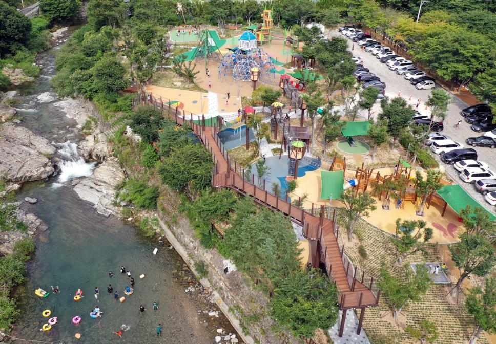 놀이퍼 바로 옆에 맑은 계곡이 있어 물놀이까지 즐길 수 있다.